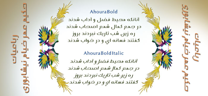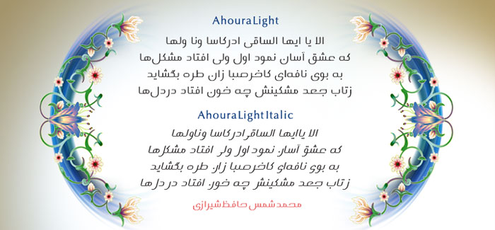 Ahoura font family designed by Naghi Naghashian was developed considering specific research and analysis on Arabic characters and definition of their structure.