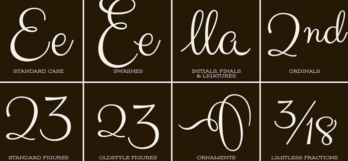 Opentype features include: