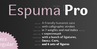 Espuma Pro Regular free font is a soft and friendly humanist sans-serif font with strong calligraphic aftertaste. Espuma Pro Regular is a part of Espuma Pro font family. Presented in 7 weights, with true … Read More