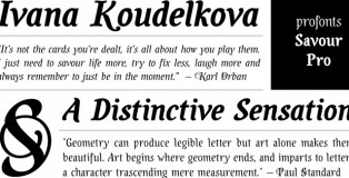 Savour Pro font designed by Ivana Koudelkova and published by profonts is an elegant, classic form with a calligraphic touch, almost a hand-written feel. The individual creation of the characters provide additional dynamics and vitality. Savour … Read More